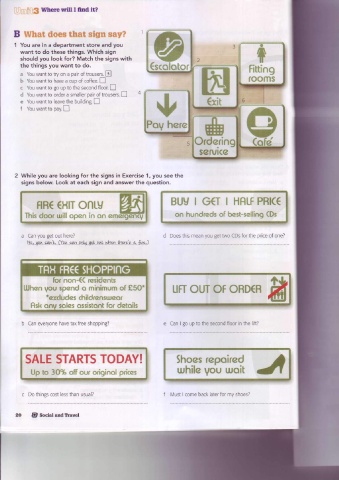 c Do things cost less than usual? f Must I come back later for mv shoes?