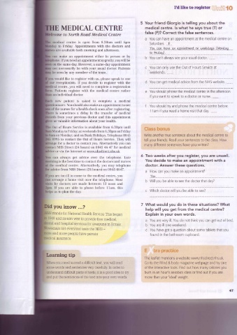 E MEDICAL CEIüTRE medical centre. ls what he says true (T) or