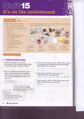 noticeboard on the opposite page. Which saving paper (5)? Which tips are about recycling