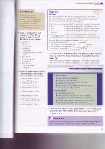 6..ib tt'r" correct option. Complete these sentences about other duties in the hotel.