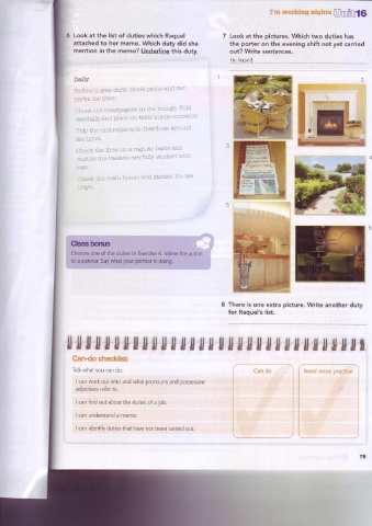 Look at the list of duties which Raquel 7 Look at the pictures. Which two duties has